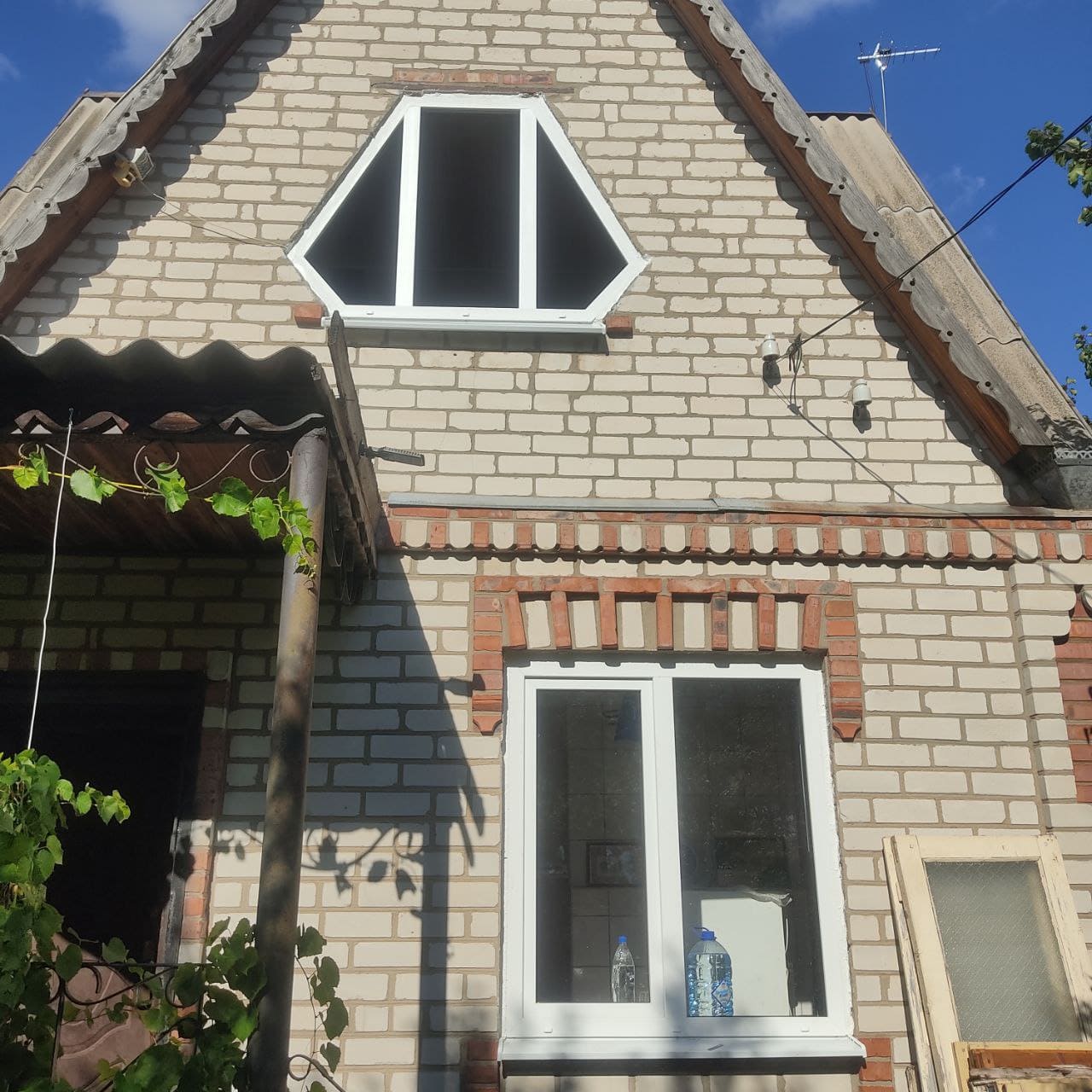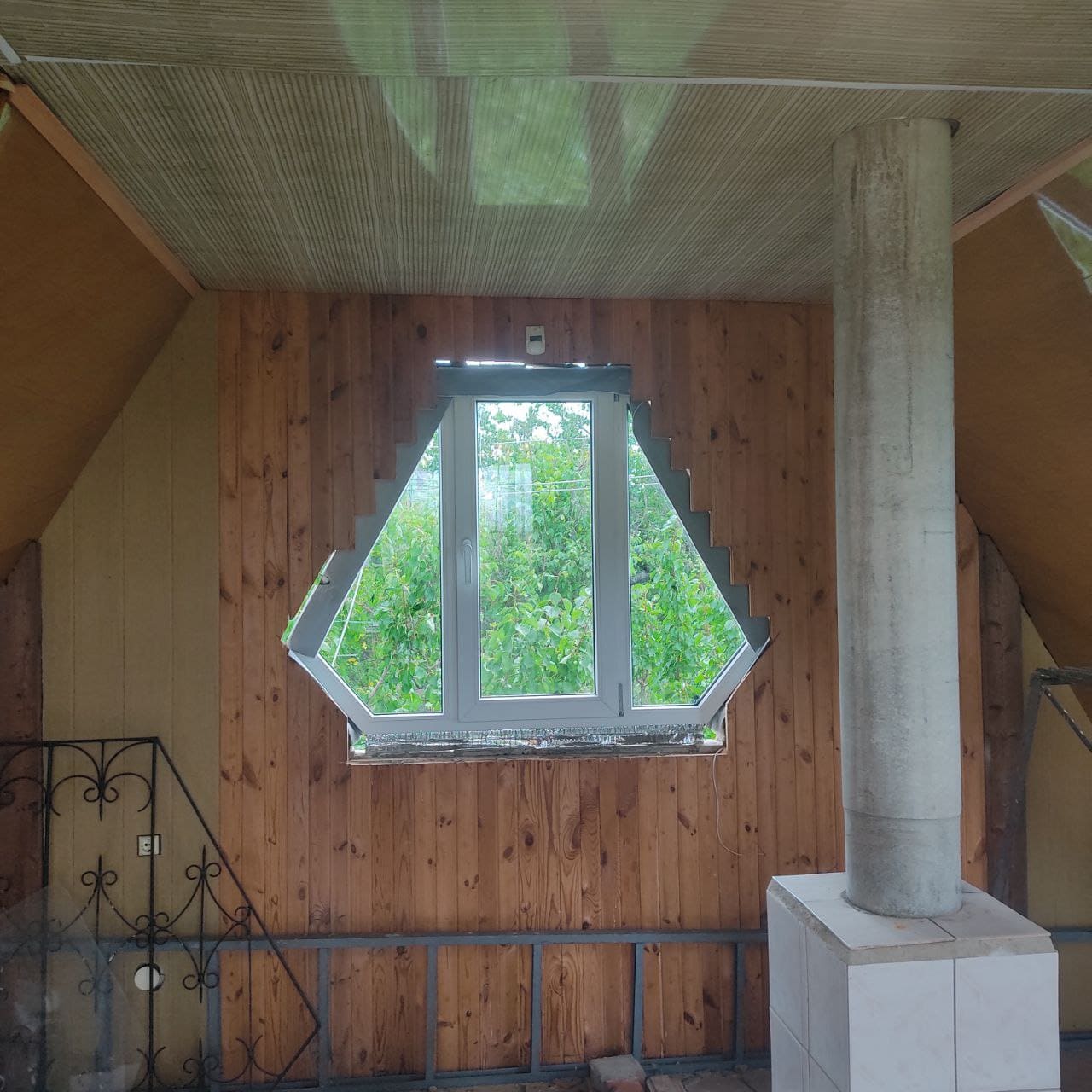 Что сделали: установили окна во всем доме, установили окна сложной геометрической формы