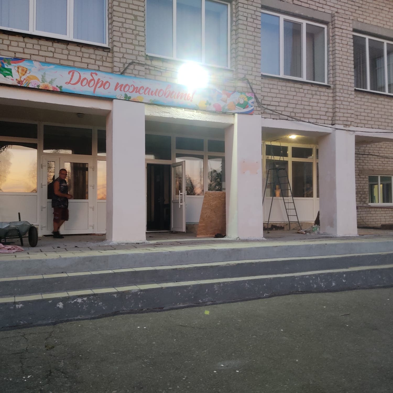 Что сделали: полностью заменили входную группу, фасадное остекление и внутренние перегородки в средней образовательной школе